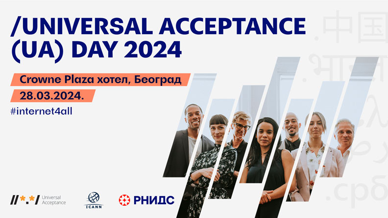 The Serbian National Internet Domain Registry Foundation (RNIDS) has the honor to be the host of the second Universal Acceptance (UA) Day keystone event. UA Day, organized by The Internet Corporation for Assigned Names and Numbers (ICANN) in partnership RNIDS and the volunteer-based Universal Acceptance Steering Group (UASG) will take place on 28th March in Crown Plaza hotel in Belgrade, Serbia. Worldwide supporting events will also be held from March through the end of May.